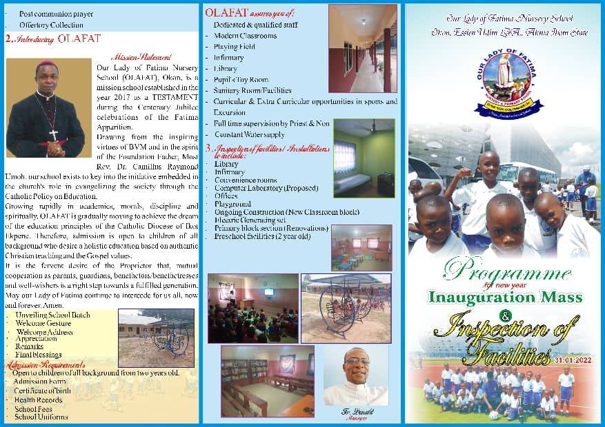 Today marks a new dawn in the history of OLAFAT, Okon. The confirmatory inspection by the state ministry of education Uyo, was a huge success. Our appreciation to all stakeholders, friends, sponsors, parents, staff and noble pupils, for the huge support all this years. Our Lady of Fatima nursery School Okon, is now a school to reckoned with in the diocese and the state. Cheers! God bless us all 🙏❣️! Management!